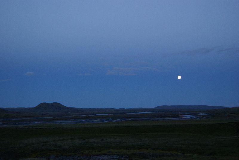 Martin did not show up, usually he is passing me at about noon, but this time he was not around. A Spanish guy stopped and told me that one of his gear cables broke down and he has only a few gears to ride left. We communicate by stopping cars, and giving massages to the other rider so we had the appointment to meet again in Hólaskjól. I carried on and reached the campsite in the early afternoon. The scenery is again fantastic meandering rivers and glaciers. In the morning we left riding through pasture land which turned later on in the typical black inland ash desert but this time covered with light green moos. The play of colours was fantastic.