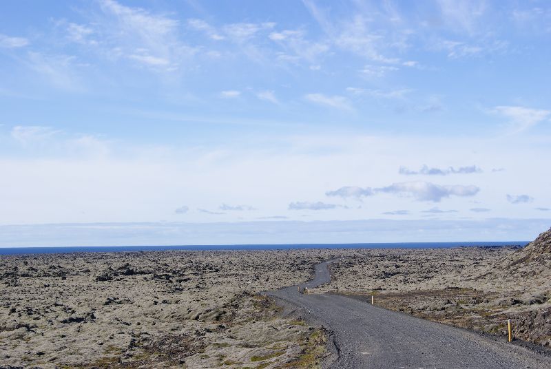 Before you come to Grindavik you have to climb up one more time (427), from that point on you are out of gravel and just cycle on north back to Keflavík.